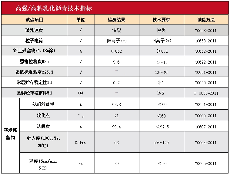 高強/高粘乳化瀝青是由特種改性瀝青(由高分子樹脂、彈性體橡膠、功能 性助劑及基質(zhì)瀝青經(jīng)過專用改性設(shè)備制備而成)通過專用膠體磨生產(chǎn)的一種水溶性的高性能材料,具有粘結(jié)強度高、粘度大、軟化點高、固化速度快等優(yōu)點。