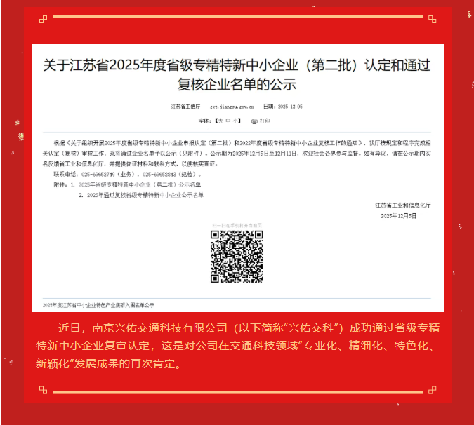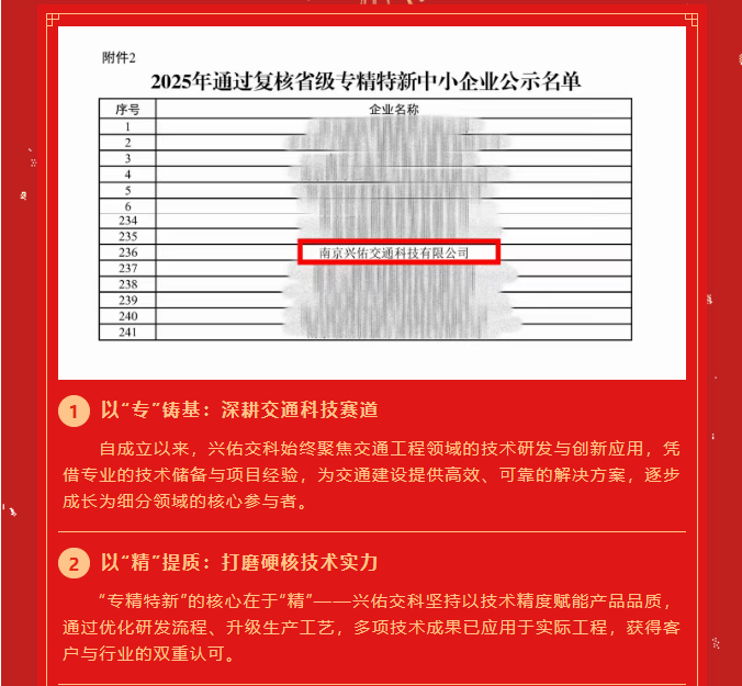 喜報 | 興佑交科順利通過省級專精特新中小企業(yè)復審!