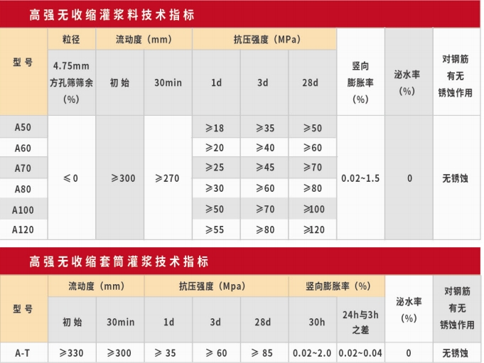 高強(qiáng)無(wú)收縮灌漿料是山膠凝材料、細(xì)集料、礦物摻合料以及功能性外加劑組成的特種砂漿,具有高強(qiáng)、高流態(tài)、無(wú)收縮、微膨脹等優(yōu)異性能。