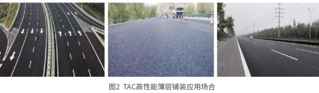 TAC 型薄層鋪裝外加劑適用于高速公路、國省干線公路、城市道路、橋面鋪裝、機場道路等瀝青路面的預(yù)防性養(yǎng)護(hù)和矯正性養(yǎng)護(hù),也可用于農(nóng)村公路“白改黑”。