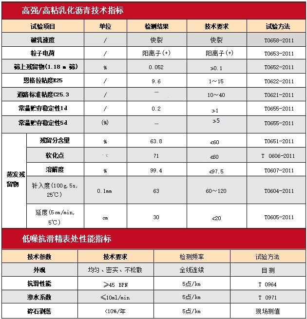 4、技術(shù)優(yōu)勢(shì) ① 功能恢復(fù)好:恢復(fù)路面抗滑功能,舊路面預(yù)防性養(yǎng)護(hù),封水及輕微病害處理; ② 粘結(jié)強(qiáng)度高:采用高分子水性樹(shù)脂復(fù)合改性瀝青,高軟化點(diǎn)、高粘結(jié)性; ③ 開(kāi)放交通快:高分子水性樹(shù)脂瀝青固化速度快,1~3小時(shí)開(kāi)放交通; ④ 行車噪音低:開(kāi)孔隙的級(jí)配,彈性材料,胎噪與原路面基本一致; ⑤ 使用壽命長(zhǎng):采用高性能樹(shù)脂復(fù)合材料,粘結(jié)性強(qiáng),壽命達(dá)5年以上。